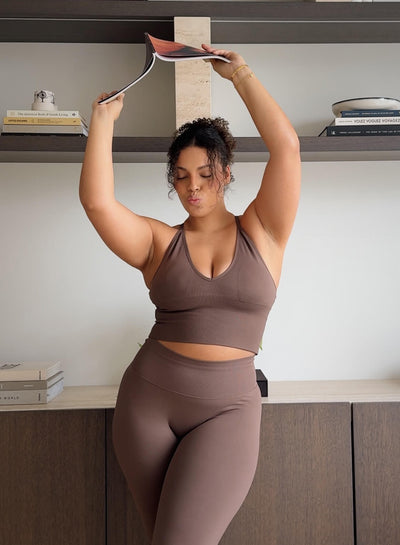 Dark Clay Ribbed Performance Bralette